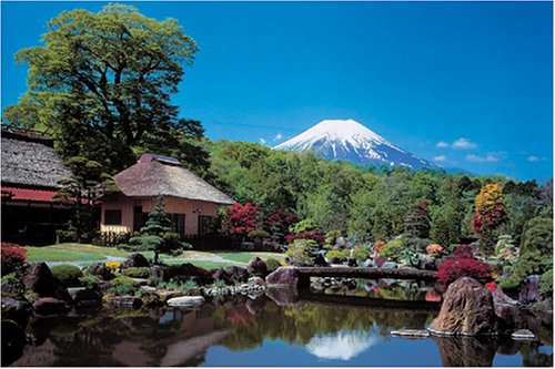 忍野村から見た富士山。水面に映って鏡富士になっている。美しい日本各地の名勝の写真がパズルになった、日本紀行シリーズ。